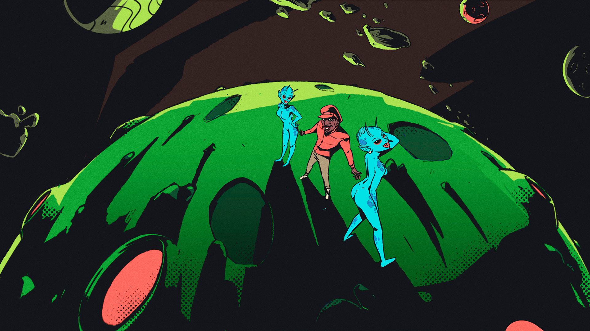 Apus Studio brought me on board to design the characters and direct the art for some key frames of the animated music video for Two Dope Boyz (In A Cadillac) by Outkast. It was an exciting and surreal experience to contribute creatively to the visual world of such an iconic hip-hop group, translating their energy and legacy into animated storytelling.